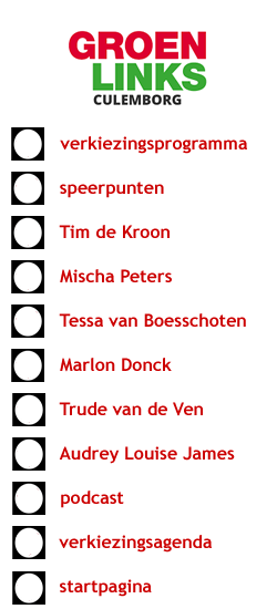 Doorbouwen aan de keuzes die de afgelopen vier jaar zijn gemaakt. Daarvoor is het belangrijk dat GroenLinks opnieuw de grootste partij wordt. Ik zie een groot risico in een centrumrechtse coalitie in Culemborg. Dat zet de stad op achteruitgang. Met team GroenLinks gaan we voor een gezonde en duurzame stad waarin iedereen kan meedoen. We hebben hiervoor oprechte en gemotiveerde kandidaten klaar staan. Stem daarom op 16 maart GroenLinks Culemborg.